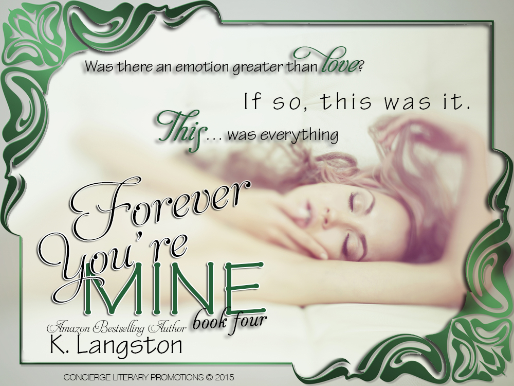 K released her debut novel, Because You’re Mine in September 2013. She has since released two follow up books, Until You’re Mine and When You’re Mine and is set to release the fourth book of the MINE series, Forever You’re Mine on April 13, 2015. K writes with passion about what she knows, love, romance and all things southern.