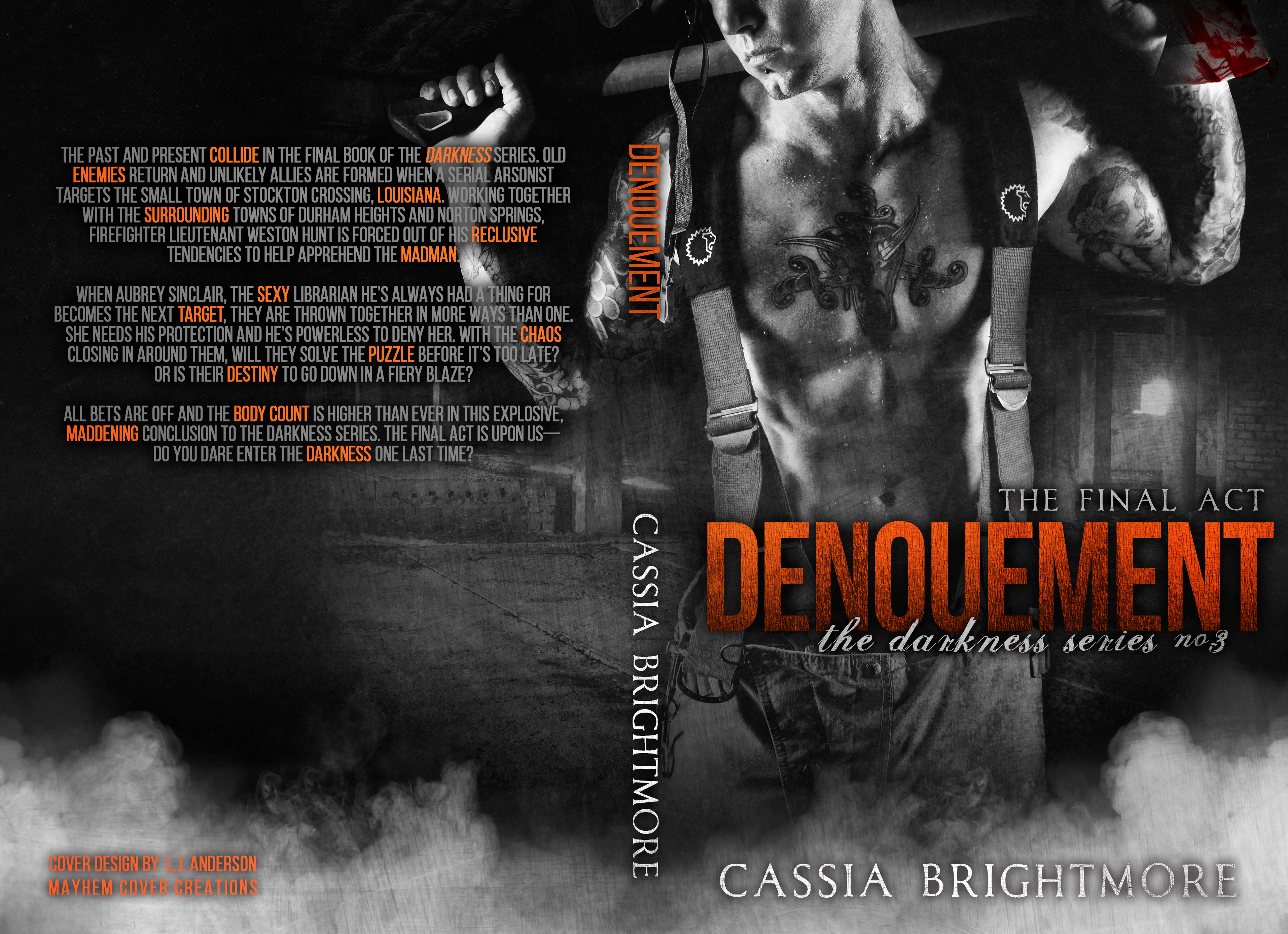 The past and present collide in the final book of the Darkness Series. Old enemies return and unlikely allies are formed when a serial arsonist targets the small town of Stockton Crossing, Louisiana. Working together with the surrounding towns of Durham Heights and Norton Springs, firefighter Lieutenant Weston Hunt is forced out of his reclusive tendencies to help apprehend the madman.